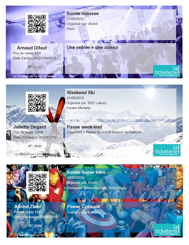 Contrôlez les billets par scan via une application mobile gratuite de scan. Téléchargez également quand vous le souhaitez la liste des participants dans laquelle vous trouverez tout le détail de vos ventes.